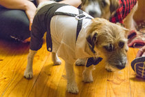 Bethy’s mate Rin-Rin, (yes that’s her actual name,) came back from a trip to Vietnam with some presents for her, dog clothes!! We couldn’t wait to dress them up. Unfortunately they took this so badly that we haven’t had the heart to do it again.